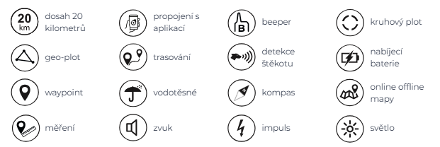 Volitelné přednastavené zprávy pro rychlou komunikaci v týmu mezi lovci. Funkce sdílení zařízení. Detekce štěkotu s velmi přesným nastavení citlivosti pro co nejrychlejší reakci. Standardní funkce světlo pro obojky X30T/TB. Do ručního zařízení lze zaznamenávat jednotlivé trasy z lovu a zpětně si je přehrávat.
