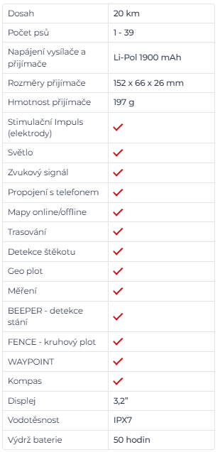 Ochrana proti krádeži zabraňuje neoprávněnému spárování obojku a možnému nechtěnému sledování cizích zařízení. Okamžité statistiky s rychlým a jasným přehledem výkonu a vzdáleností v reálném čase. Online aktualizace zajišťuje vždy nejnovější software. Koordinace celého týmu prostřednictvím šifrovaných textových zpráv, které zajišťují naprostou bezpečnost a nulové rušení zvenčí.